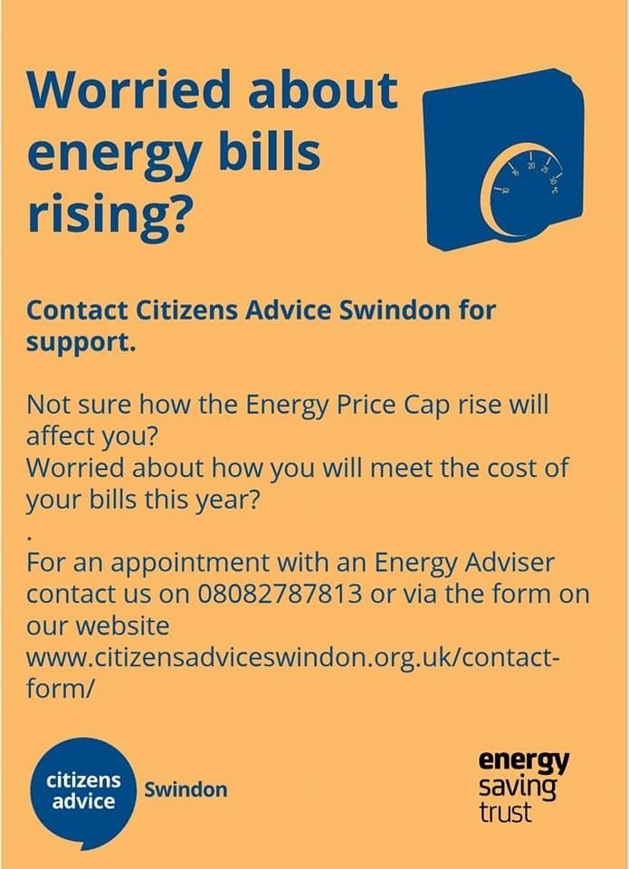 If you are worried about the rising energy costs and the affect it will have on you, please refer to the service that Citizens Advice Swindon offer.